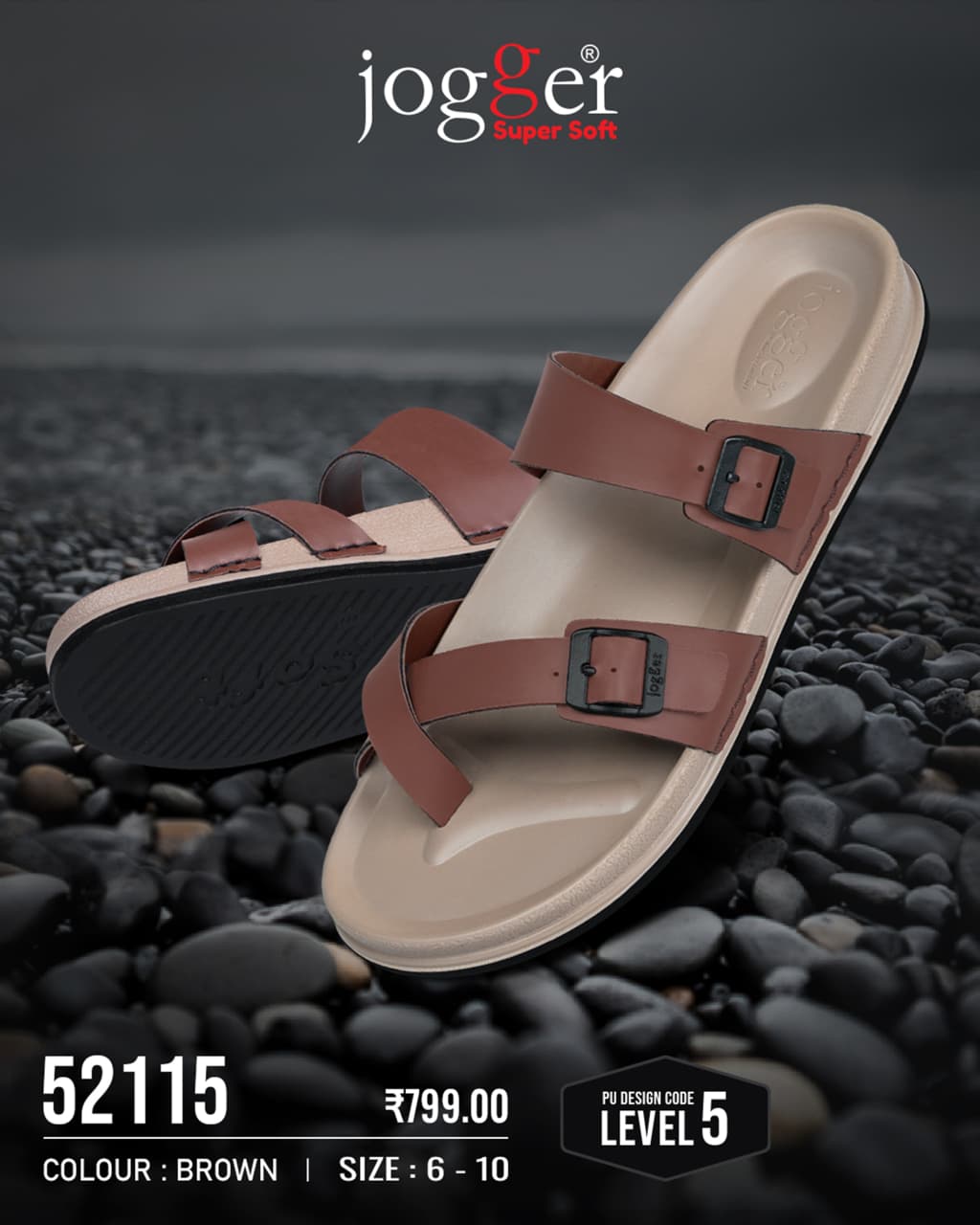 Step into all-day style and comfort with the Jogger Super Soft 52115 Men's Sandals, crafted with a modern touch for today’s everyday needs. These double-layer sole sandals feature a soft low-density footbed for extra comfort, while the slip-resistant grip ensures steady steps on various surfaces. The premium metallic buckle adds a bold style element, and the synthetic leather upper gives a polished, versatile look. Built to last with strong adhesive bonding and water-resistant design, this pair is perfect for both casual outings and relaxed traditional wear.