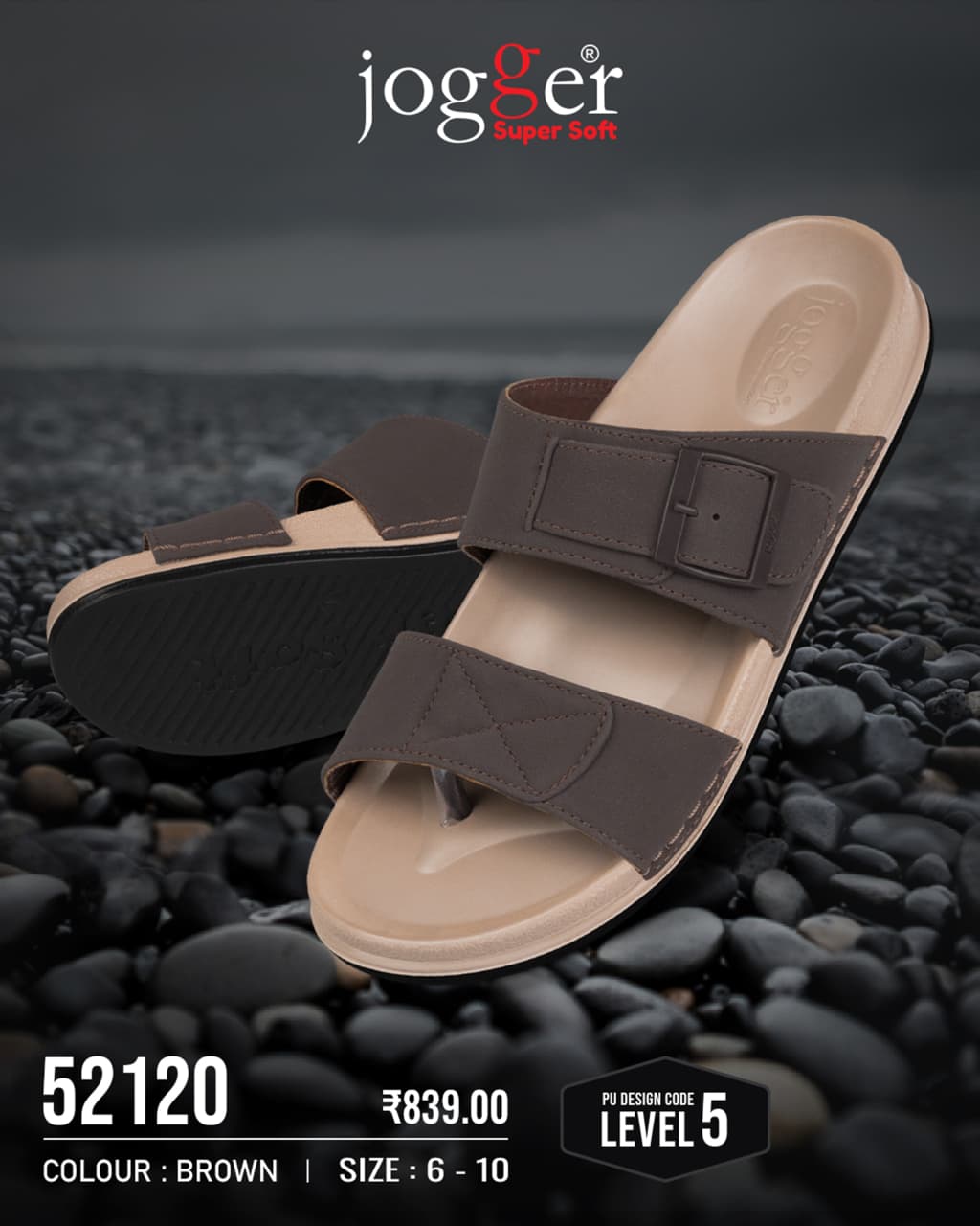 Step into all-day style and comfort with the Jogger Super Soft 52120 Men's Sandals, crafted with a modern touch for today’s everyday needs. These double-layer sole sandals feature a soft low-density footbed for extra comfort, while the slip-resistant grip ensures steady steps on various surfaces. The premium metallic buckle adds a bold style element, and the synthetic leather upper gives a polished, versatile look. Built to last with strong adhesive bonding and water-resistant design, this pair is perfect for both casual outings and relaxed traditional wear.