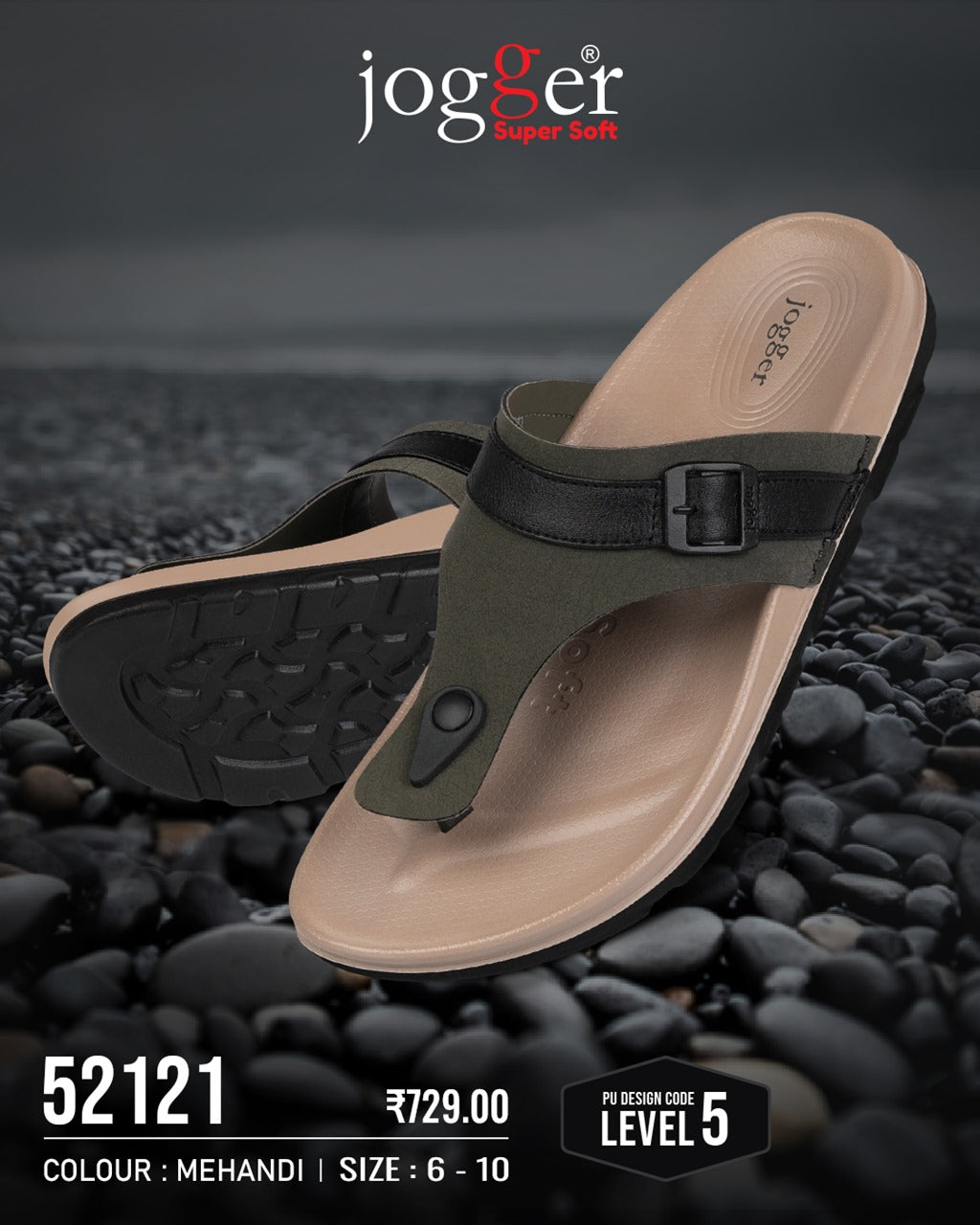 Step into all-day style and comfort with the Jogger Super Soft 52121 Men's Sandals, crafted with a modern touch for today’s everyday needs. These double-layer sole sandals feature a soft low-density footbed for extra comfort, while the slip-resistant grip ensures steady steps on various surfaces. The premium metallic buckle adds a bold style element, and the synthetic leather upper gives a polished, versatile look. Built to last with strong adhesive bonding and water-resistant design, this pair is perfect for both casual outings and relaxed traditional wear.